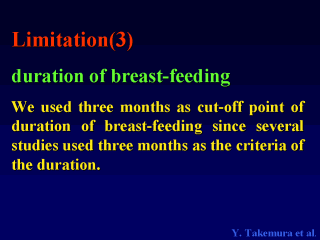 Besides degree of exclusivity, duration of breast-feeding should be considered in this kind of study. We used three months as cut-off point of duration of breast-feeding since several studies used three months as the criteria of the duration.