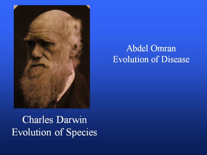 Charles Darwin talked about the evolution of Species. Abdel Omran also dealt with evolution, but the evolution of diseases in populations over time. |