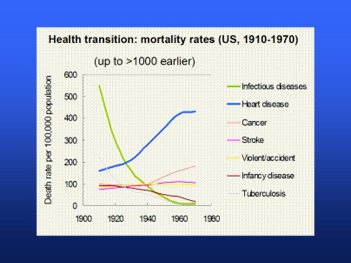 In the health transition one sees a rapid decline of infectious diseases followed by a growth of Non communicable diseases |