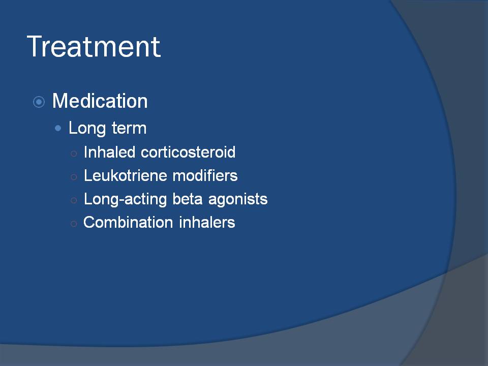 Long term medications, typically taken daily, are one way to control and manage asthma symptoms.