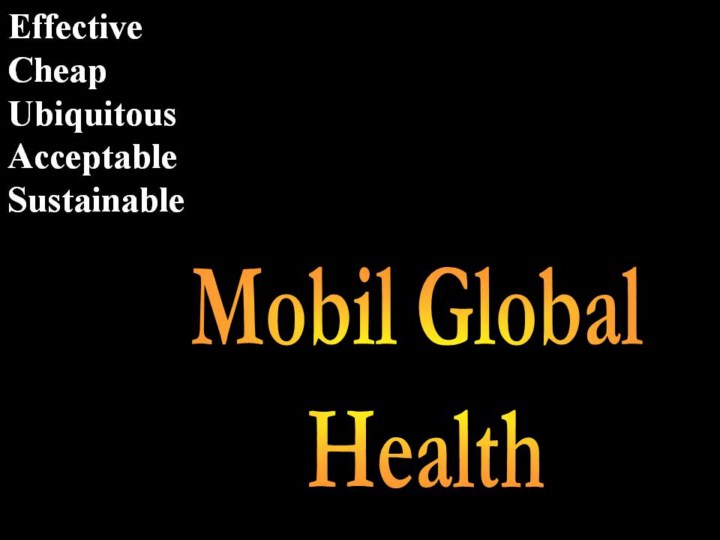 We argue that Mobile Global health fulfils all these criteria. Prevention education has been proven to be very effective, access to cell phones is inexpensive, and ubiquitous, mobiles are acceptable in all societies, and people love their phones. |