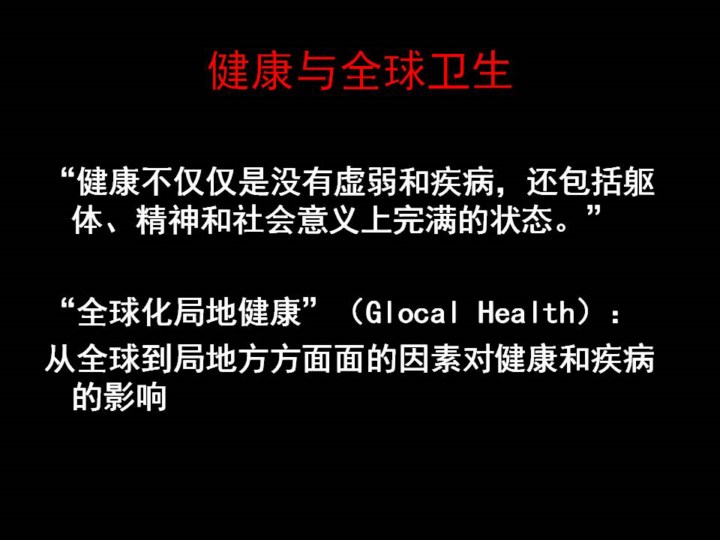 为了促进全球健康,我们需要思考“GloCal”,从全球到当地。坐在我们面前的病人不仅受到他/她当地环境的影响,还受到他/她的社区、国家乃至世界的影响。我们需要从当地情况考虑,但我们同样需要加进全球化的思考。