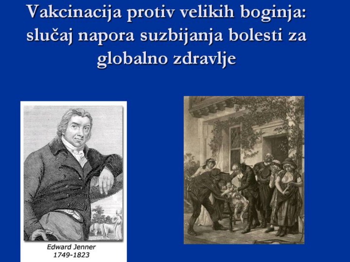 Historija o epidemiji velikih boginja i uspješnom iskorjenjavanju ove bolesti je uspješna priča koju trebaju slijediti savremeni kliničari i javnozdravstveni profesionalci. Milioni ljudi su umrli u Evropi i Meksiku kao rezultat širenja epidemije velikih boginja. Nestanak velikih boginja započinje nakon saznanja da su osobe koje su preživjele bolest sticale trajni imunitet za ovo obolenje. To stajalište uvodi u praksu “variolaciju”- proces izlaganja zdravih osoba infektivnom materijalu sa osoba oboljelih od velikih boginja. Vjerovalo se da umjeren stadijum bolesti izazvan ovim postupkom predviđa stečeni imunitet za buduću infekciju. Slijedeći korak u suzbijanju velikih boginja dogodio se observacijom Engleskog ljekara Edward-a Jenner-a, koji je otkrio kravlje boginje, manje ozbiljnu bolest mljekarica jer nije bio otkriven smrtonosni slučaj kravljih boginja. Jenner je 1796. godine uzeo tečni sadržaj pustule s ruke oboljele od kravljih boginja mljekarice i inolulirao je 8- godišnjem dječaku. Nakon 6 sedmica dječak je bio izložen velikim boginjama, ali nije imao nijedan simptom ove bolesti. Jenner je sadržaju pustule kravljih boginja dao termin "vakcina" nastalu od riječi “vaca" koji znači “krava” na Latinskom.