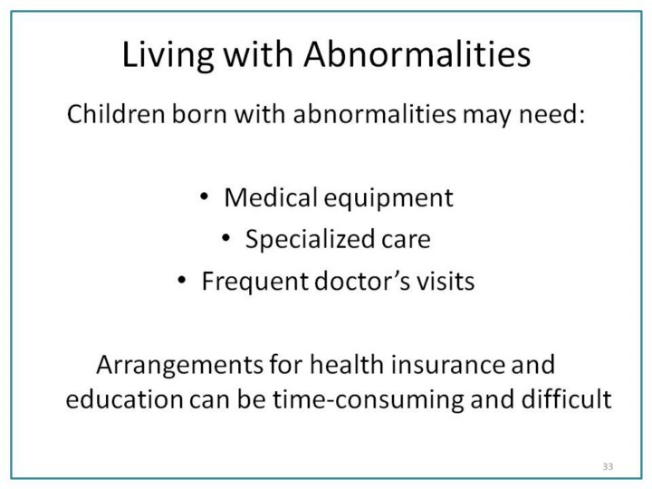 Individuals born with a birth defect still face significant obstacles. While parents no longer display their children for money, much of their time is spent navigating the confusing network of physicians, specialist services, educators, and members of the community. Organizations and Internet support groups provide some measure of help and comfort. |