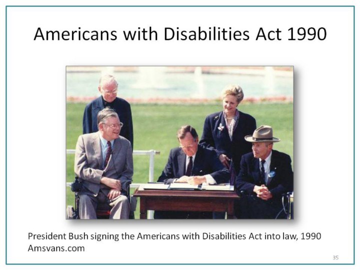 With the passage of the Americans with Disabilities Act in 1990, the United States set precedent by legally accepting disabled individuals into society and public spaces. Prior to this bill, it was common to restrict the lives of disabled people so that they could not work, marry, or participate in meaningful ways. |