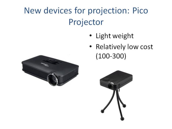 Data from cell phone can be projected to classrooms using various types of media. If TV or regular projector is not available, novel inexpensive pico projectors can provide an interesting alternative. With the cost of pico projectors going down, the idea of projecting public health messages using cell phones and pico projectors is becoming more realistic |