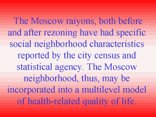 quality of life and cancer mortality by neighborhood (Figure 5 : Environmental Quality by Moscow District, 1993 , Figure 6 : Cancer Mortality by Moscow District, 1989) ,