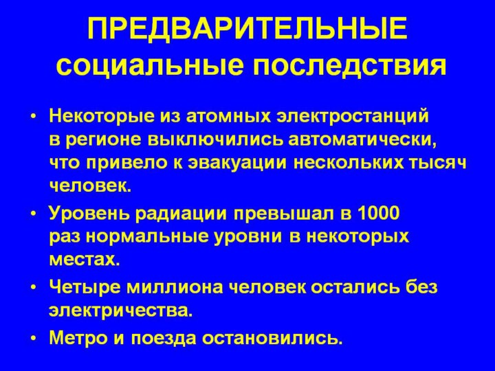 По данным ООН, Ситуационный отчет № 3, 1,6 миллиона человек живут в 5 км от берега в 5 префектурах, пострадавших от цунами (Ивате, Мияги, Фукусима, Ибараки и Тиба). Более 371000 людей были эвакуированы в эвакуационные центры, расположенные в пострадавших от цунами районах на северо-востоке.
