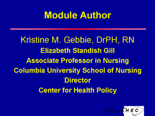 Kristine M. Gebbie, DrPH, RN Columbia University School of Nursing Center for Health Policy 630 West 168th Street, Mail Box 6 New York, NY 10032 (212) 305-1794 or e-mail at kmg24@columbia.edu Kristine Gebbie joined the faculty of Columbia University School of Nursing in 1995, and is the Director of the Center for Health Policy. Her teaching and research are in health policy and health systems, with particular attention to population-focused prevention and public health systems. She currently has research funding from both the Health Resources and Services Administration and the Centers for Disease Control and Prevention. Prior to coming to New York, Dr. Gebbie served as the nation’s first National AIDS Policy Coordinator, a White House position created by President Clinton to coordinate national efforts in HIV/AIDS prevention, treatment and research. Prior to that she was Secretary of Health for Washington State and head of public health in Oregon. Dr. Gebbie’s earlier career was in academic health centers, as faculty member at UCLA School of Nursing and as faculty member and hospital administrator at St. Louis University School of Nursing and St. Louis University Hospitals. She has served on national committees advisory to the Secretary of the US Department of Energy as well as the Director of the Centers for Disease Control and Prevention. Dr. Gebbie is an elected member of the Institute of Medicine, the American Academy of Nursing,and the New York Academy of Medicine. She is also an active participant in a wide variety of national and international professional organizations. Dr. Gebbie’s extensive list of publications includes topics such as community mental health, mental health consultation, public health nursing, public health infrastructure, health policy and HIV/AIDS. In addition to many peer-reviewed journal publications, she has authored or co-authored several texts and book chapters and editorials. She writes a regular health policy column for the journal AIDS Reader, and serves on the editorial boards of the American Journal of Nursing, Journal of Public Health Policy and Journal of Public Health Management and Practice.
