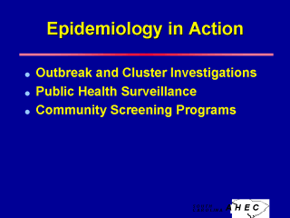 Applied epidemiology synthesizes and applies the results of etiologic studies to set priorities for intervention; it evaluates public health interventions and policies; it measures the quality and outcome of medical care; and it effectively communicates epidemiologic findings to health professionals and the public. Outbreak and cluster investigations, public health surveillance and community screening programs represent key areas of public health practice in which systematic application of epidemiologic methods have a large and positive impact. |