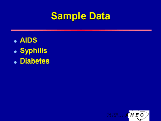 The following slides present epidemiologic data for three major public health issues – two infectious diseases and one chronic disease. The data are shown in a variety of formats: line graphs, tables, bar graphs, pie charts and maps. The slides may be presented and described by the instructor or may be adapted for student discussion. |