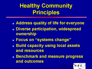 From: Healthy People in Healthy Communities, Coalition for Healthier Cities and