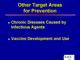 Chronic Disease: Several chronic diseases once attributed to lifestyle or environmental factors (such as some forms of cancer, diabetes, heart disease, and ulcers) are actually caused by or intensified by an infectious agent. For example, the majority of peptic ulcers - long thought to be due to stress and diet - are now known to be caused by the bacterium Helicobacter pylori. Recent data indicate that Chlamydia pneumoniae infection may contribute to coronary artery disease. Findings such as these raise the possibility that some chronic diseases may one day be treated with antimicrobial drugs or prevented by vaccines. Vaccine Development and Use: Childhood diseases such as diptheria, tetanus, polio, measles, mumps, rubella, and Haemophilus influenzae type b mennigitis have been virtually eliminated in the United States through universal vaccination. Smallpox has been eradicated worldwide, and polio may be globally eradicated by 2000. Several new vaccines are undergoing clinical evaluation (against Lyme disease, rotavirus, and invasive pneumoccocal disease). No effective vaccine exists for many new or re-emerging diseases such as HIV/AIDS, dengue, hepatitis C, and malaria. Increasing vaccination rates for adults and children is a high priority in the US. USDHHS (1998), Preventing Emerging Infectious Diseases: A Strategy for the 21st Century, Atlanta: Centers for Disease Control and Prevention. USDHHS, Morbidity and Mortality Weekly Report, 47(RR-15), September 11, 1998, Atlanta: CDC. |