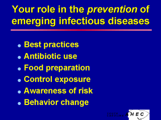 The Centers for Disease Control and Prevention is a primary source for scientific information on emerging infectious diseases. Since human behavior is a major factor in the spread of infectious disease, the CDC emphasizes programs that change behavior by influencing individuals and organizations. The CDC also provides guidelines on how to prevent specific diseases or disease problems. These prevention guidelines are implemented in partnership with all health care workers and community groups. As a health care professional, you become part of the network for dissemination of information about prevention of infectious diseases. - Use best practices to prevent infectious disease transmission in personal and professional roles. The first and foremost best practice is HANDWASHING. Others include basic hygiene and the use of personal protective equipment. - Prescribe antibiotics prudently and appropriately, and provide patients with appropriate instruction regarding the importance of completing the entire course of antibiotic therapy. SC has undertaken a statewide physician & patient/parent outreach education program to address this issue. - Follow recommended food preparation and storage guidelines to prevent foodborne disease. - Follow recommended guidelines for vector borne diseases: dress to prevent access, check for ticks, and use insect repellants with DEET if at risk of exposure to mosquitoes. - Be aware of the risk of infectious diseases in professional and personal life. - Change behavior to incorporate preventive measures into daily activities. |