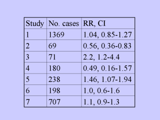 slides. RR = relative risk, CI = 95% confidence interval. Study 1 = Giovannucci et al