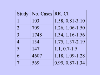 Hsing et al 1990, 9 = Tverdal et al 1993, 10 = Coughlin et al 1996, 11 = Hammond 1966, 12
