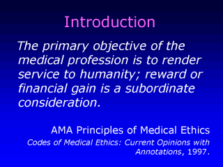 with the Principles of Medical Ethics; they have been a driving impetus for establishing