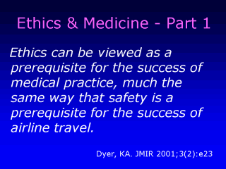 | Knowledge and capabilities of new technology or an area of study often develop faster than the guidelines and principles needed for practitioners to practice ethically in the new arena. One area of rapid technological and economic expansion is that of the Internet, in particular how quickly the Internet is impacting and changing the practice of medicine in the 21st century. |