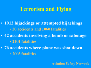 forms of terrorism related to air safety exist as well. Bombs or sabotage resulted in 42