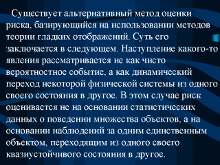 | Мерой риска выступает степень приближенности параметров системы к их бифуркационным значениям, по достижении которых и осуществляется перескок системы из одного состояние в другое. |