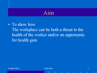 to understand the working life of his/her patient. What does he do-can it be defined precisely? Where does he/she work-factory, office, inside, outside? What skills does he have-spraying, trades like bricklaying etc.? What training has he required? What substances, are handled-animal skins, foodstuffs etc? What precautions-masks, visors, fume cupboards? What toxic products is he exposed to-dye stuffs, benzene, organo-phosphates? Do the other workers get sick? In essence an Occupational Health History covering every job from leaving school until retirement. Hobbies may also be important e.g pigeon breeders. |