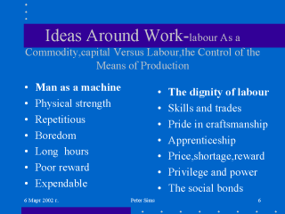 man has seen the transition from hunter/gatherer to farmer/herdsman and then town dweller. Living together in communities enabled there to be specialisation , the development of particular skills e.g the blacksmith, the trader, the priest, the healer. A man was rewarded for his skill and knowledge as much or more than for his strength and courage in battle. Work was either unskilled or at best semi-skilled where a man was employed for his strength and flexibility in performing several manual tasks or he was a skilled worker following a long training, usually by apprenticeship.Skilled workers formed themselves together into Guilds and enjoyed power,prestige and patronage. The development of formal education helped to place some forms of training and learning e.g medicine within an academic setting. |