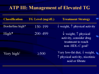 LDL-C goal. † Primary aim of therapy is to reduce risk for pancreatitis through TG lowering first, then focus on LDL-C.‡ To achieve non–HDL-C goal (set at 30 mg/dL higher than LDL-C goal), intensify therapy withLDL-C–lowering drug, or add nicotinic acid or fibrate. Expert Panel on Detection, Evaluation, and Treatment of High Blood Cholesterol in Adults. JAMA. 2001;285:2486-2497. © 2001, Professional Postgraduate Services® |