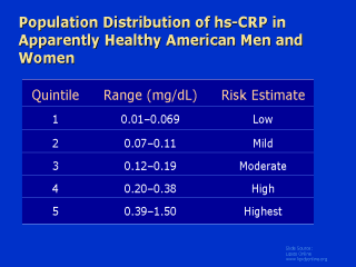 ongoing evaluation of several thousand healthy American men and women, the range of CRP