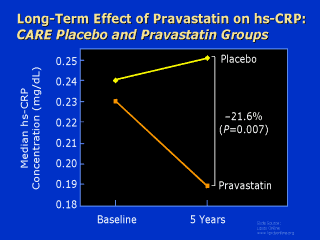 pravastatin-treated groups. However, at the end of 5 years, CRP levels were markedly