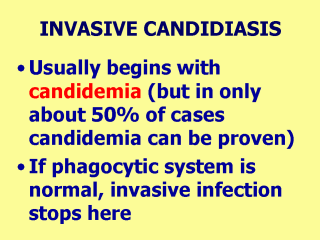 | Most cases of candidemia in surgical patients end this way.C.albicans is found in over 75% in blood culture of non-neutropenic and non-cancer patients, while other species are found in more than 50% of neutropenic and cancer patients. |