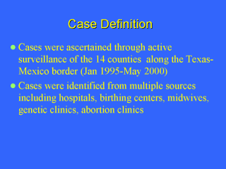 - Data for this study came from the Texas Department of Health's Neural Tube Defect Project