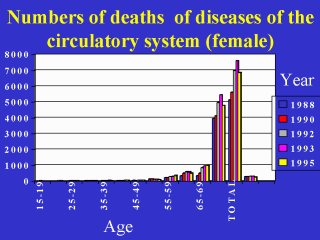 increase of death-rate in the blood circulation diseases group from 287.5 in 1985 to