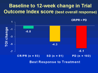 | TOI: Again focussing on the extreme groups. The difference in change scores is 5.3 for response to treatment. |