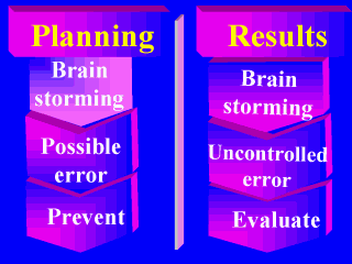 | These efforts are translated into two brain storming sessions. The first session starts before initiating the study. The investigator has to think of the possible errors that can occur or he can commit and try to prevent them from the very beginning. The second session is during the interpretation of the results. The investigator has to think of all possible errors that could have occurred and he was not able to prevent. Then, he evaluates their impact on the results. |
