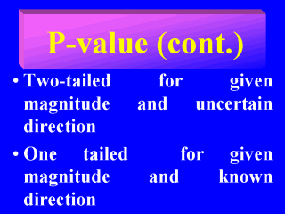 | The two-tailed test is the most commonly used in epidemiology. The one-tailed values are only used when there is a strong prior hypothesis and the goal of the study is to increase the precision of an estimate where the direction is known. |