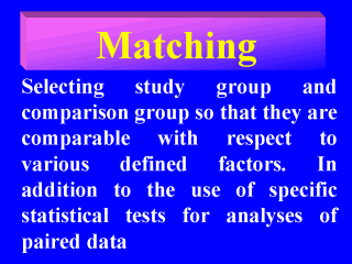 Matching includes elements in both design stage and analysis for all analytical studies.