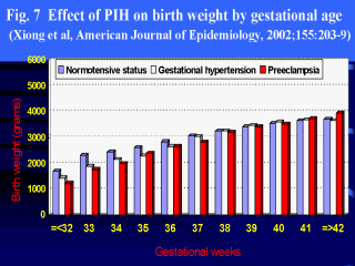 | Based on the data from Alberta, Canada, the birth weights were statistically significantly lower in mothers with preeclampsia delivering before and at 37 weeks. However, the birth weights were not lower in mothers with preeclampsia delivering after 37 weeks. In Alberta, 61.2 % of preeclamptic patients gave birth after 37 weeks. |