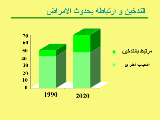 ليس فقط عدد زيادة وفيّات تبغ لكن أيضا النسبة المئوية لكلّ الوفيّات سببها التدخين. كما ترى، نجاحنا في السيطرة على الامراض المعدية يعادل بشكل ملحوظ العبء المتزايد للامراض المتعلقة بالتدخين. بالطبع،تسبب