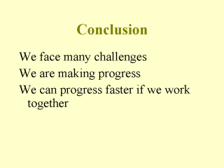 discussed - However, I hope that I have also made it clear that we are making progress in addressing these challenges and that working together we can progress even faster - And we need to do so if health promotion and health education are to play the critical role that they must in the new millennium. I urge you to contribute to this effort. |