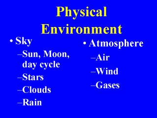 The physical environment with all its elements in the sky, on earth and in the atmosphere (between the sky and earth) are made in accordance to human needs.
