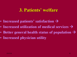 of medical care -> better health status of the general population. - Similarly, if the doctor can now treat greater number of patients, one can expect better health status of the general population. |