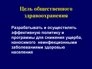 public health Develop effective programs and policies to reduce the adverse health effects of noncommunicable disease. |