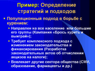 | Часто при выборе стратегии профилактики наиболее привычным является предпочтение стратегии высоко риска, т.е. Лечение известных случаев заболеваний и предупреждение их осложнений. Между тем существует ряд преимуществ популяционного подхода к вопросам профилактики, что признано во всех странах, достигших положительных результатов в снижении преждевременной смертности населения. |