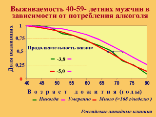 среднем, на 3,8 и 5 лет меньше тех, кто употребляет