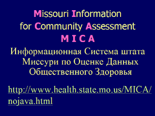 система, разработанная в штате Миссури (США): - интерактивная (в режиме реального времени), работающая через меню, программа в Интернет для получения данных по общественному здравоохранению; - была создана для доступа к данным штата и локальным данным по общественному здравоохранению. При разработке системы были учтены следующие требования: - большинство пользователей имеют средний уровень понимания компьютерных технологий и данных общественного здравоохранения; - вариации данных должны быть ограничены для легкого использования; - в таблицах представлены частота или процент; - частота заболеваемости стандартизована по возрасту; - таблицы создаются типично и быстро; - может быть легко составлена карта округов штата с соответствующими показателями; - данные могут быть загружены в Excel (или другую подобную программу) для составления графиков; - правила конфиденциальности, блокируют создание некоторых таблиц. |