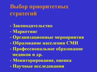 | При выборе приоритетных стратегий необходимо учитывать их эффективность и результативность установленную на основе научных исследований и предшествующего опыта. |