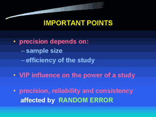 Precision and the related concepts of reliability and consistency are affected by RANDOM ERROR. The greater the error, the less precise the measurement. |