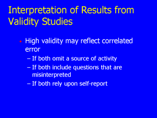 correlated. - This is of greater concern when using subjective measures which may share sources of errors with questionnaires. Objective measures would not be subject to this limitation, however are often more expensive to administer.
