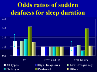 | People who reported sleeping less than seven hours per night were about one-and-a-half to two (OR=1.61, 95% CI=1.09-2.37) times more likely to be cases than those who reported sleeping seven to eight hours per night in all types. |