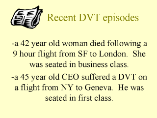 Not all of the recent events of DVT and pulmonary emboli in air travel, though, have involved economy class.